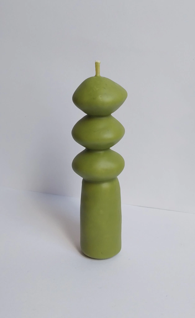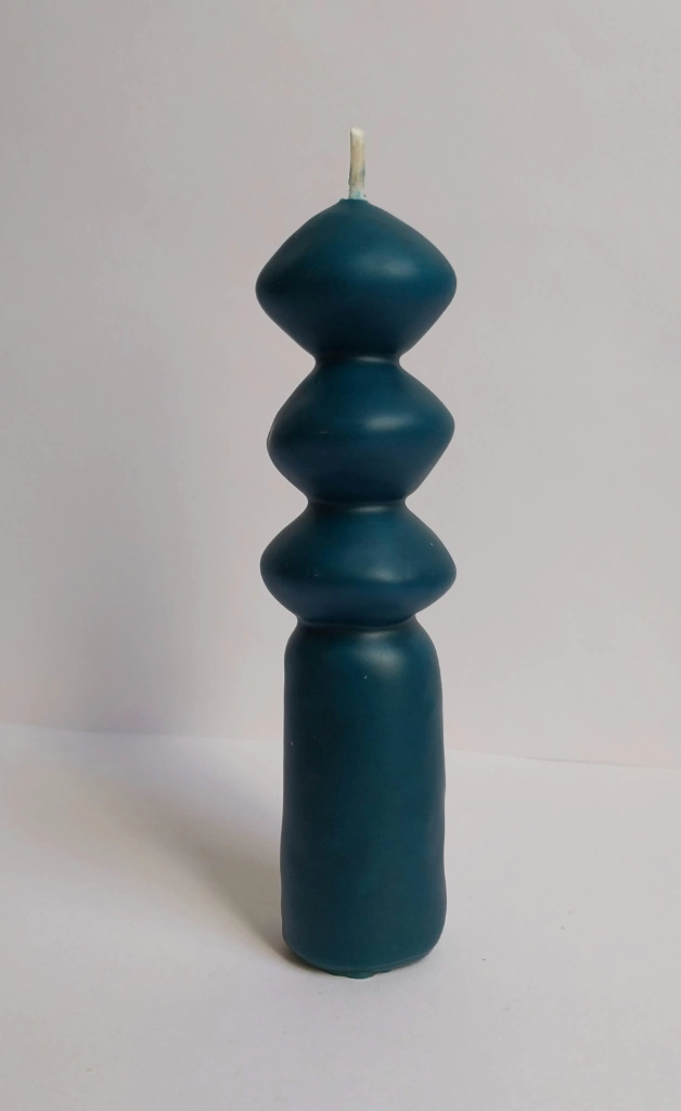 Vela realizada en mezcla de cera de abeja y cera de soja, modelada a mano.